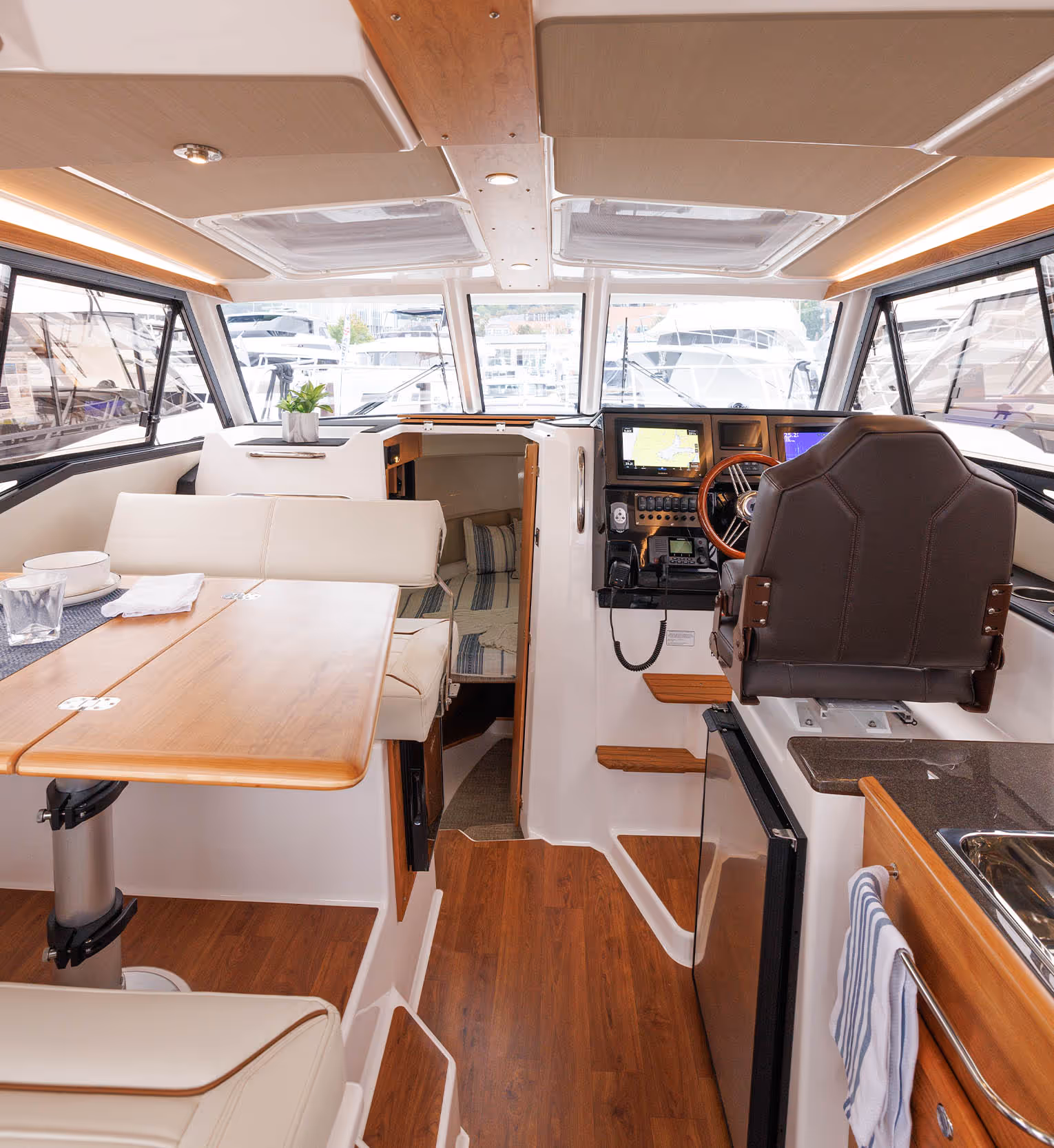 - Safety kit: fenders, lines, flares, fire ext, first aid kit, life jackets, boat hook