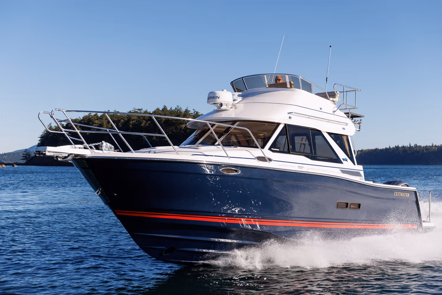 Often, we hear that our boats feel like a much larger boat for the size, this comes down to usability. If there’s a way to include more functionality per foot, our engineers will find it. You’ll find examples throughout every Cutwater, like the C-248 C’s pop-up ski pylon or the C-32's expanding gunwale seating. We also build-in features because you’ll find them to be very convenient over time. Just a small selection of this list includes powered engine hatches in our diesel inboard boats, opening overhead hatches and portlights to let the breeze in on a warm day, ample storage and cabinetry with flush stainless knobs, drink holders, well placed grab rails, LED accent lighting, and USB charging outlets to name a few.